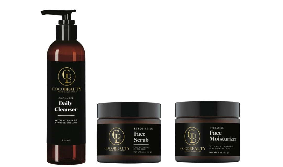 "The men collection" skincare set includes a daily cleanser, exfoliating face scrub, and hydrating face moisturizer. Start your skincare regimen today!